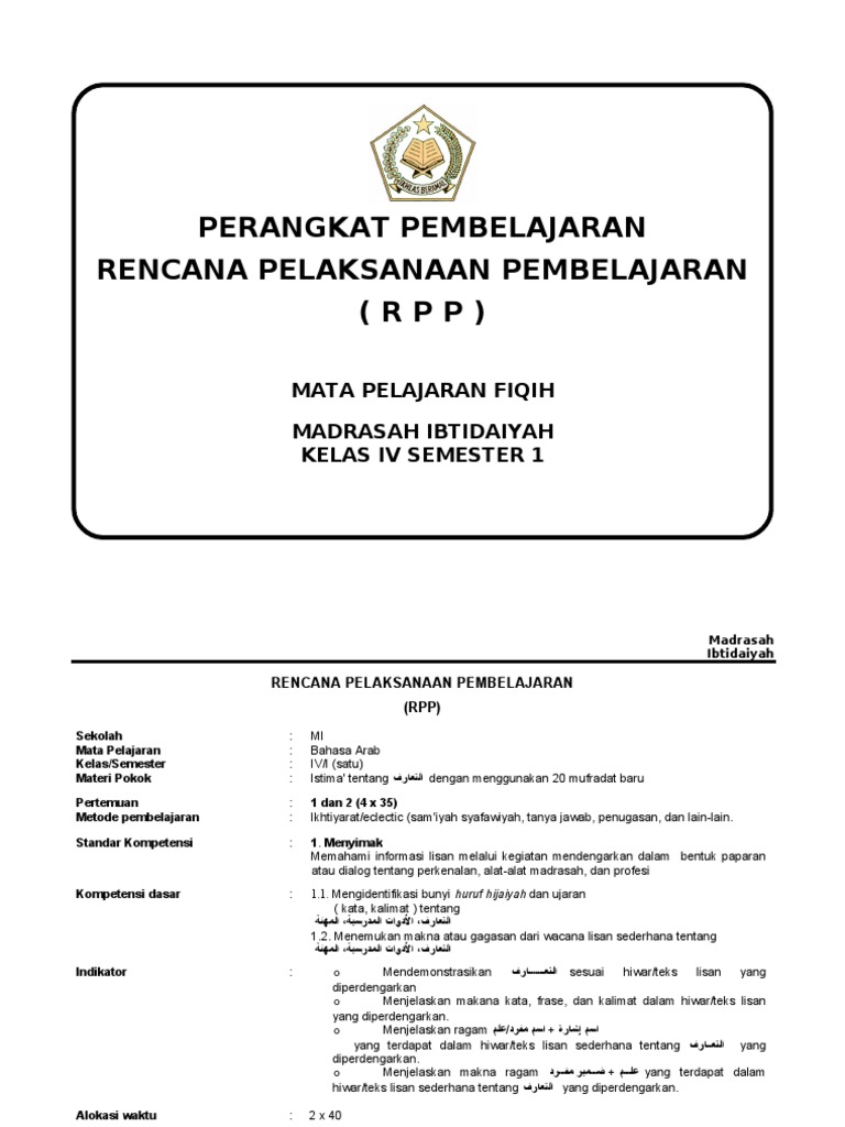 Mi 6_bhs arab siswa siswa (ok). Menerima, menjalankan, dan menghargai ajaran agama yang dianutnya. Filenya bisa anda download pada link berikut ini setiap guru. Rpp bhs arab kelas 4 kma 183 : Rpp bahasa arab kelas 7 8 9 madrasah tsanawiyah (mts) merupakan rencana proses pembelajaran yang meliputi tujuan, metode, teknik pembelajaran dan penilaian, dan lain sebagainya.